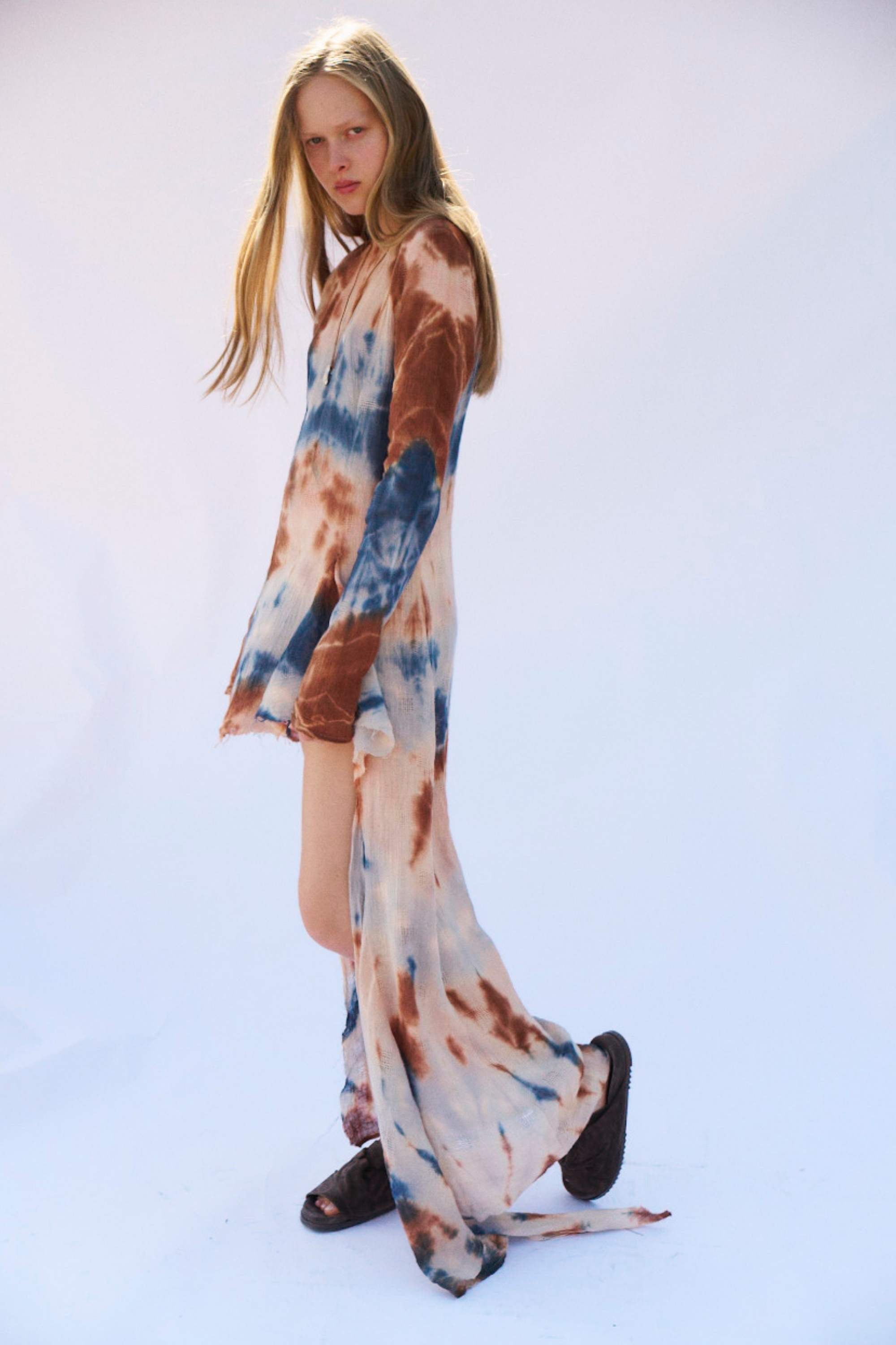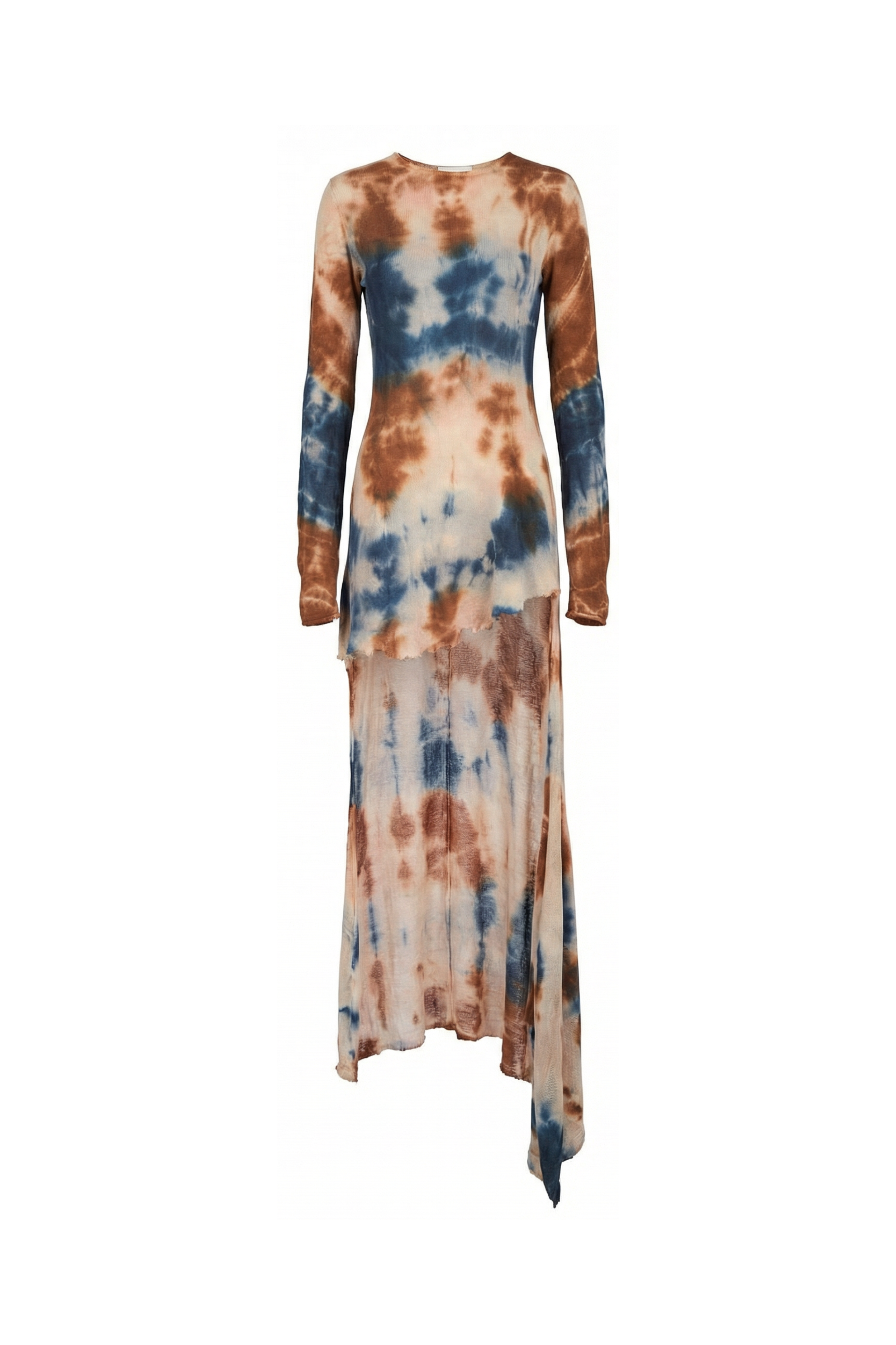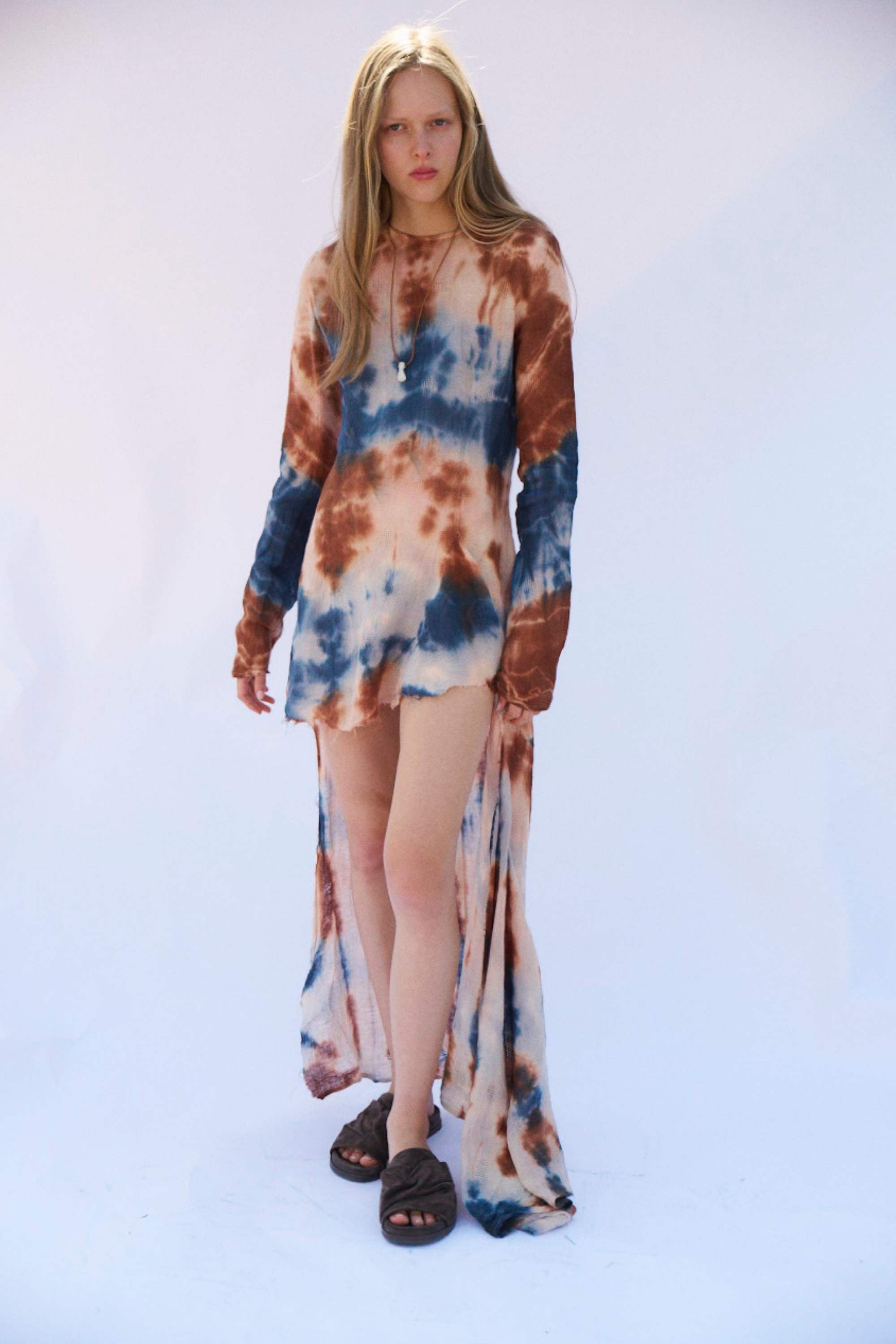 A long-sleeve silhouette made from lightweight muslin linen. Softly structured through the body, it falls into a fluid, flowing high-low skirt. Finished with a raw hem for an understated, relaxed feel, wear as-is or style over pants or a skirt as a top.