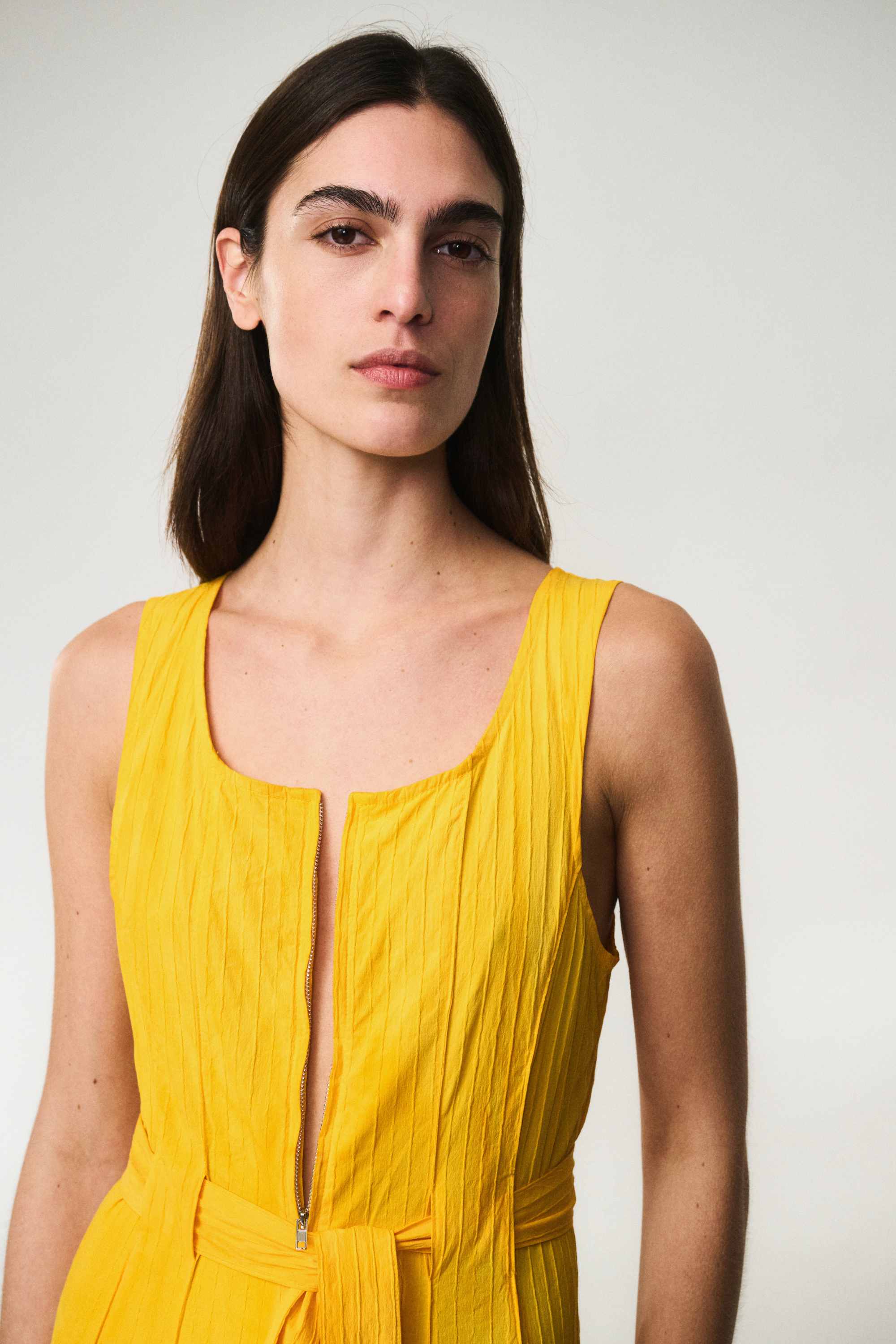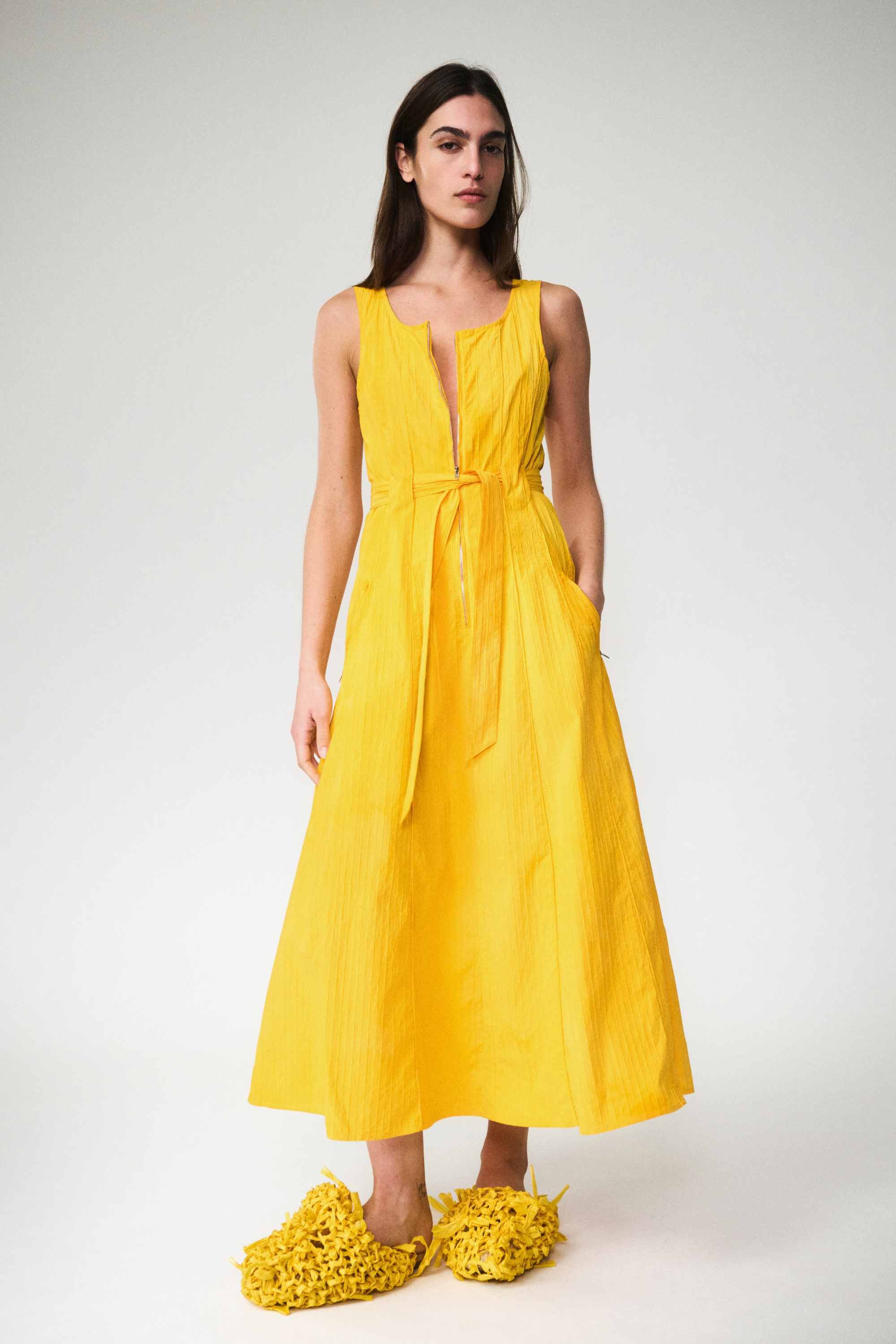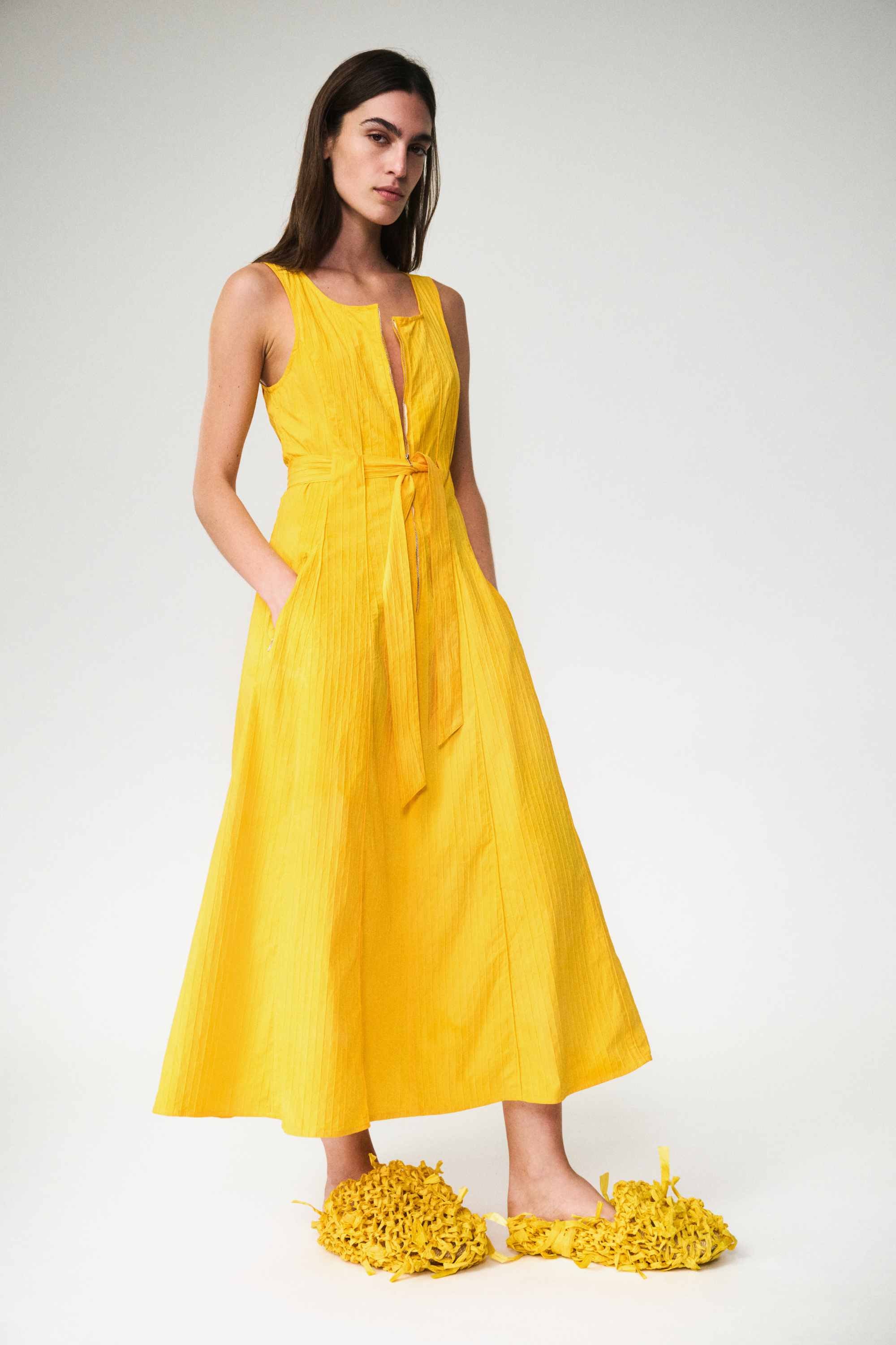Sleeveless midi dress with zip pockets.