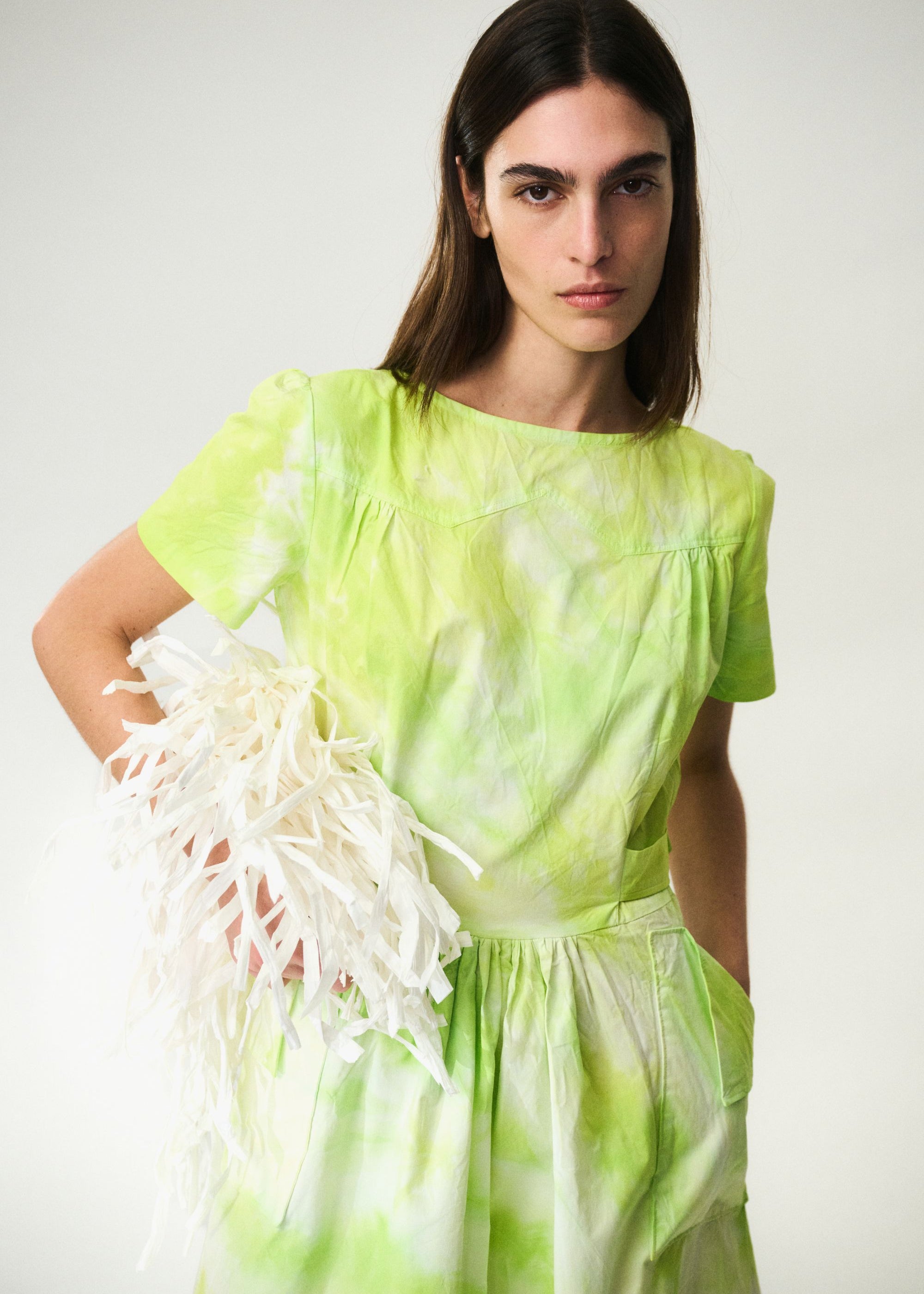 SILK COTTON PLEATS SHIRT DRESS
